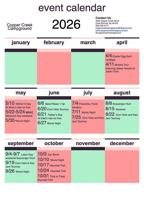 COPPER CREEK CAMPGROUND 2025 EVENTS
